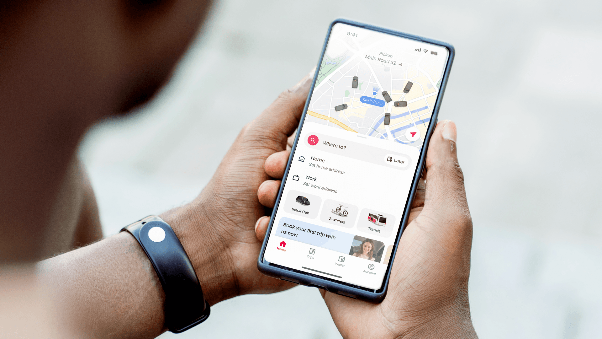 Got the app downloaded? Then you’re ready to go. Open the app, enter your destination, choose your taxi and go.